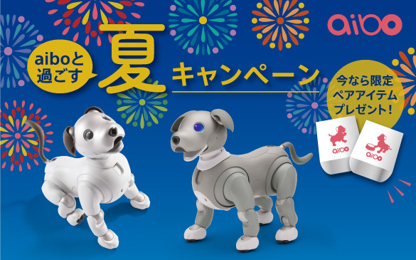 ソニーは、「aibo(アイボ)」を購入するユーザーを対象にした『aiboと過ごす夏キャンペーン 〜今なら限定ペアアイテムプレゼント〜』を開始。ソニーストアオンラインおよび全国5ヶ所のソニーストアにおいて、9月27日11時まで実施する。