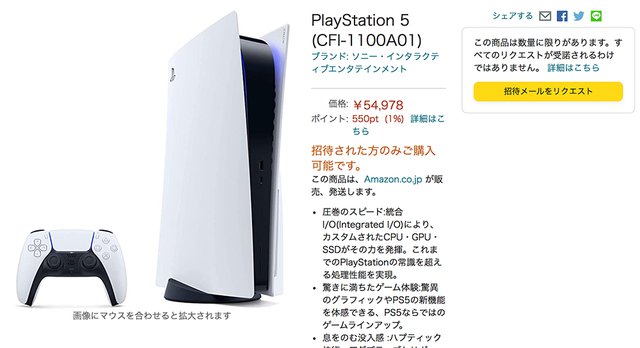 Amazonは、PlayStation 5の販売方式として、招待販売制を採用した。招待メールをリクエストし、そのメールが送られた方のみ購入可能となる。