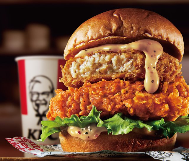 ケンタッキー、“揚げ物×揚げ物“ 「チキンフィレ&メンチカツサンド」。11/17から数量限定