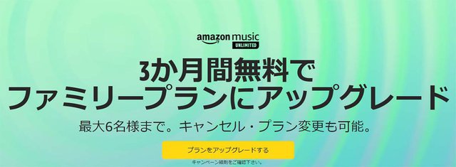 また、既にAmazon Music Unlimitedに登録されているというユーザーには、ファミリープランへの3ヶ月無料アップデートキャンペーンといった施策も用意されている。