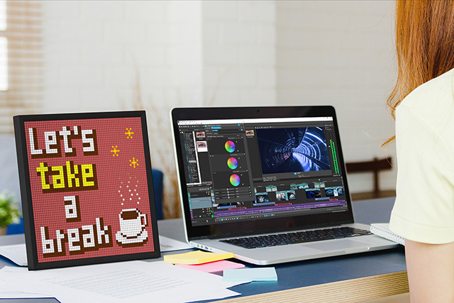 従来モデルよりも大きな64×64/256灯のLEDパネルを搭載し、スマホアプリ「Divoom」から転送したピクセルアートデザイン、またはピクセルアートアニメーションを表示できる製品。