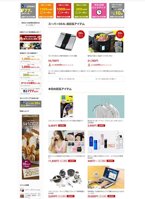 楽天、ポイント最大40倍「超ポイントバック祭」開始。今週金曜12/17 9時59分まで