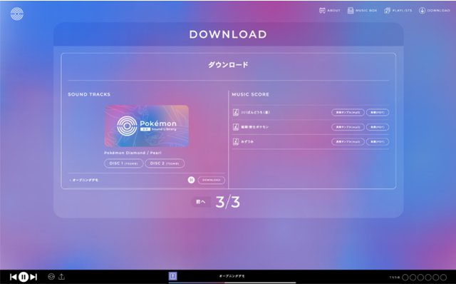 Pokemon DP Sound Library は、Nintendo Switchソフト『ポケモン ブリリアントダイヤモンド・シャイニングパール』および『Pokemon LEGENDS アルセウス』のそれぞれのルーツともいえる、2006年発売のニンテンドーDSソフト『ポケットモンスター ダイヤモンド・パール』のBGMや効果音、全149曲を無料で聞くことができるウェブサイト。