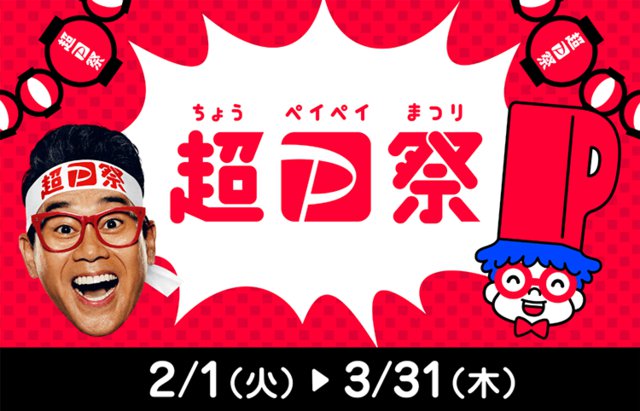 PayPay、ヤフー、ソフトバンクは、「超PayPay祭(ちょうペイペイまつり)」を2月1日から3月31日まで実施する。
