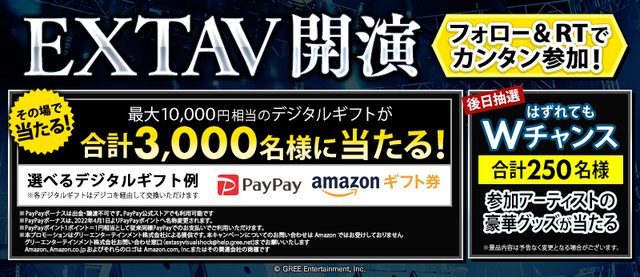 さらに、本アプリのリリース記念として、対象期間中に毎日商品が当たる「EXTAV開演Twitterキャンペーン」を実施する。実施期間は、3月31日から4月5日までの計6日間。
