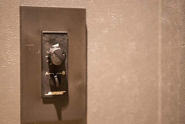 休憩室とサウナ室では同じ音楽をシームレスに再生することができる。A/Bと切り替えできるスイッチが壁に取り付けられており、Aでは共用部と同じアンビエンス系の音楽が再生され、Bでは室内のBluetoothトランスミッターとつながっている。ここではまずBにスイッチを合わせた。