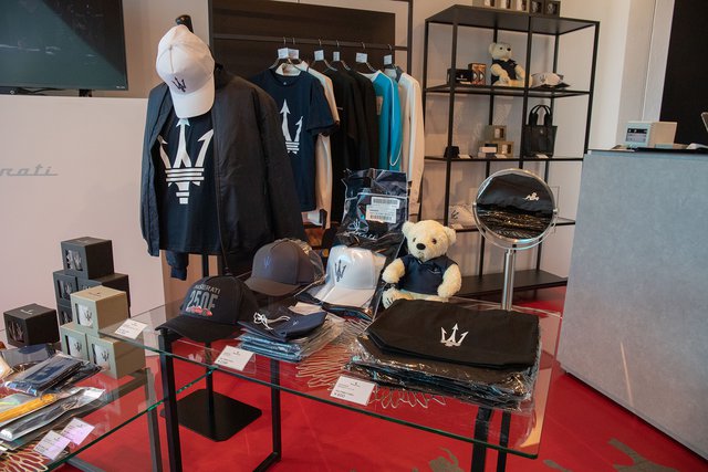 また、ルームフレグランスのDr.Vranjes(ドットール・ヴラニエス)、メンズウェアのZEGNA(ゼニア)など、過去にマセラティとコラボレーションしたイタリアブランドも展開されるほか、Tシャツやキャップ、ぬいぐるみといったオリジナルグッズなども販売されている。