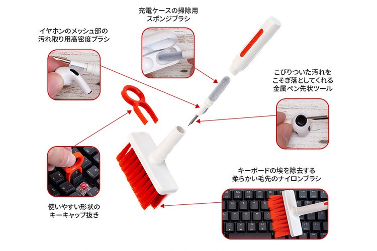 上海問屋、キーボードとイヤホンのお手入れ用「5in1クリーニングキット」