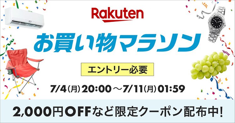楽天「お買い物マラソン」本日7/4 20時から!2時間限定の最大半額クーポンも配布中