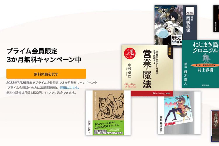 “本を聴き放題” できるサービスがAudibleだ。12万以上の書籍を、プロのナレーターや俳優、声優による朗読で、 “聞く読書” できるボイスサービスとなる。このAudibleが、プライム会員限定で7月25日まで3ヶ月無料となるキャンペーンが展開されている。