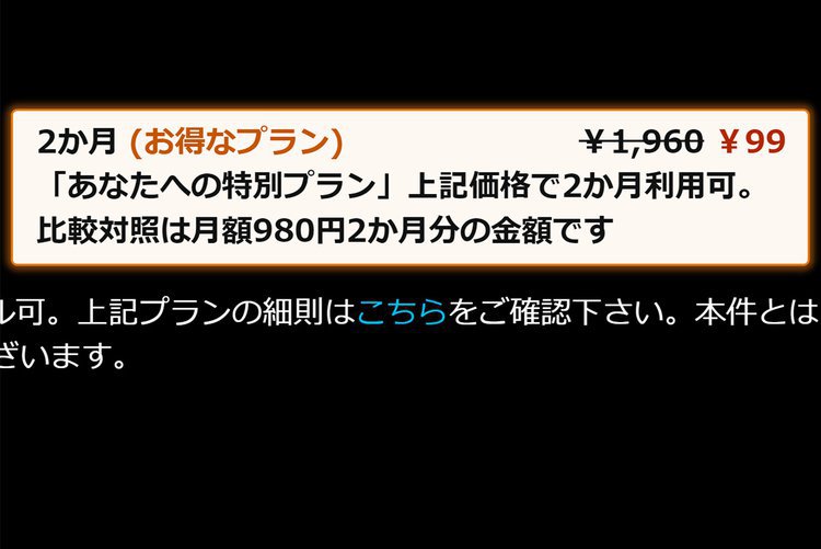 また合わせて、Kindle Unlimitedが2ヶ月99円で利用できるキャンペーンも実施中。通常料金2ヶ月1,960円のところ、2ヶ月99円と約95%オフのお得な料金で利用できる。ただし、プランを利用できる条件は「キャンペーンが表示されているお客様が対象」となるため、自身のアカウントが対象かどうか今一度確かめてもらいたい。