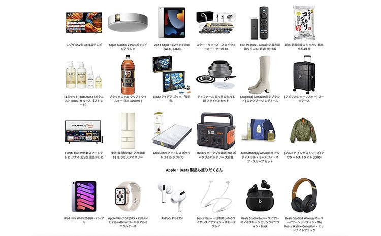 こうやって書いていると書き切れないが、ほかにも白物家電、PC、ゲーム、日用品・ドラッグストア・食品・飲料、服・シューズ・時計など、この冬欲しい商品がもりだくさん。何を買おうか悩むのも楽しい1週間になりそうだ。