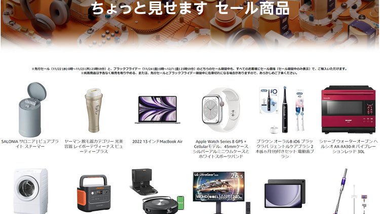 そのほかにも、ゲームやDVD・BDといったソフトウェア類に、洋服やシューズ、バッグといったファッション関連の商品も対象となる見込み。ネットスーパーでも、Amazon Freshとライフで食料品・日用品が最大50%オフになる特選セールが24日より開催されるなど、多方面のジャンルの商品が多数お買い得となる。