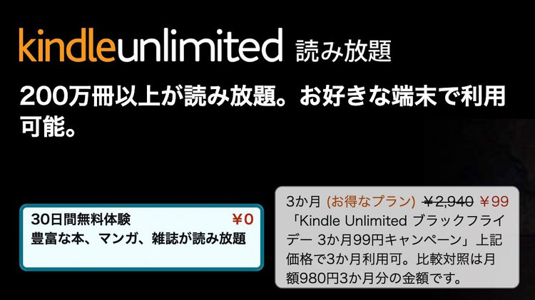 Amazonブラックフライデーはサブスクも激安!Kindle読み放題3ヶ月99円、Amazon Musicは3ヶ月無料