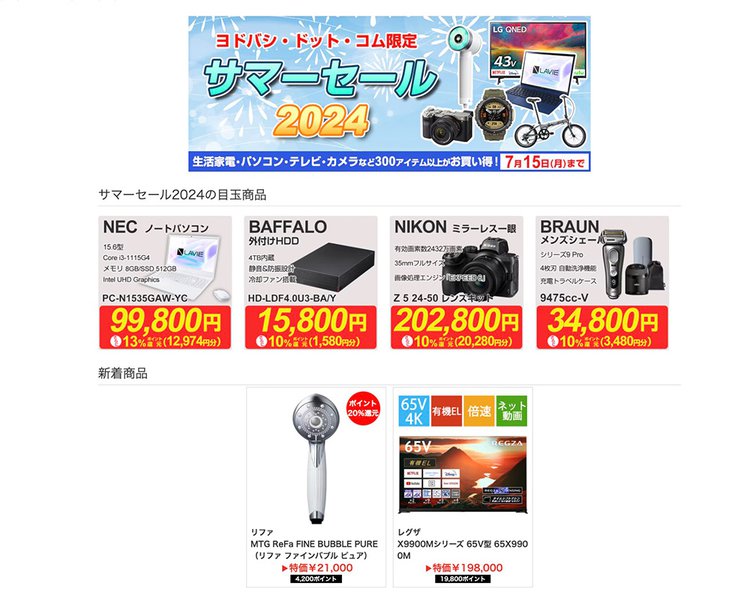 ヨドバシ.comは、「サマーセール 2024」を7月15日まで実施中。生活家電やパソコン、テレビ・カメラなど300アイテム以上がお買い得となっている。