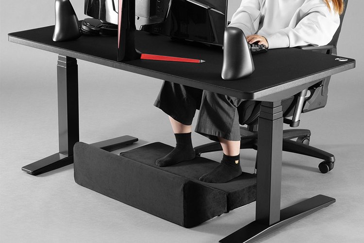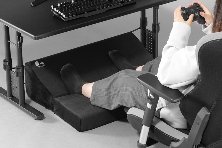 日本人にとってサイズ設計が大きすぎることが多い海外メーカー製ゲーミングチェアなどを使用する際に生じる、座面の高さが身長に合わず「床に足が届かず、落ち着かない」「太ももが圧迫されて足がむくむ」といった問題を解決するための足置きクッション。