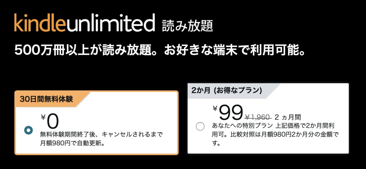 案内が表示されたらチャンス!Amazon「Kindle Unlimited」2か月99円キャンペーン開催中