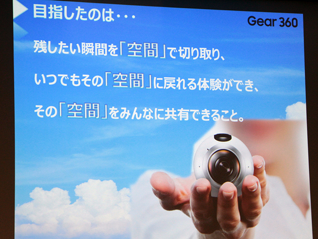 同社 プロダクト担当 糸櫻幹推氏は「Gear 360で思い出を切り取り、その空間ごとみんなにシェアできる世界が実現する」と表現。「空間を残せる楽しさ・面白さを多くの人に体感してもらって、また空間ごとたくさんシェアしてほしい」と語った。