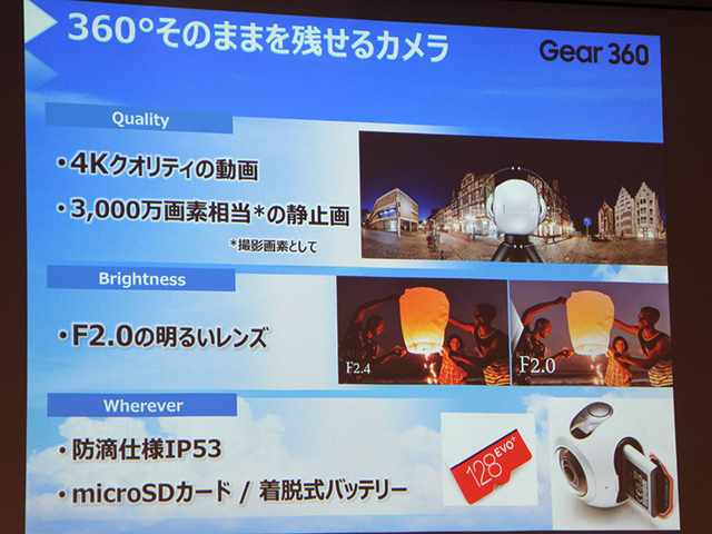 Gear 360の製品テーマは「思い出の残し方を変える」。これまで写真など平面でしか残せなかった思い出のワンシーンを、360度の「空間ごと」残せるようにするものだと同社はアピールする。