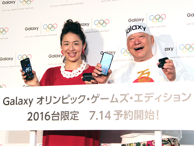 また本日同社が開催した発表会には、元オリンピック選手であるアニマル浜口さんと浜口京子さんが“Galaxyの応援”に駆けつけた。アニマルさんが「Galaxyだー! Galaxyだー!」と叫びながら登場すると、続けて京子さんが「お騒がせしてすみません…」と笑顔で挨拶した。