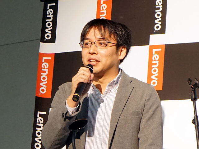その第一号機「Lenovo Legion Y520」について、コンシューマ製品事業部ノートブック製品担当の三島達夫氏は「スタンダードモデルで、ゲーミングノートPCとしては軽くて丈夫」と紹介。排気口からの熱がマウスやキーボードに伝わらないように設計している点など、こだわりを説明した。