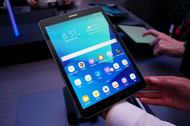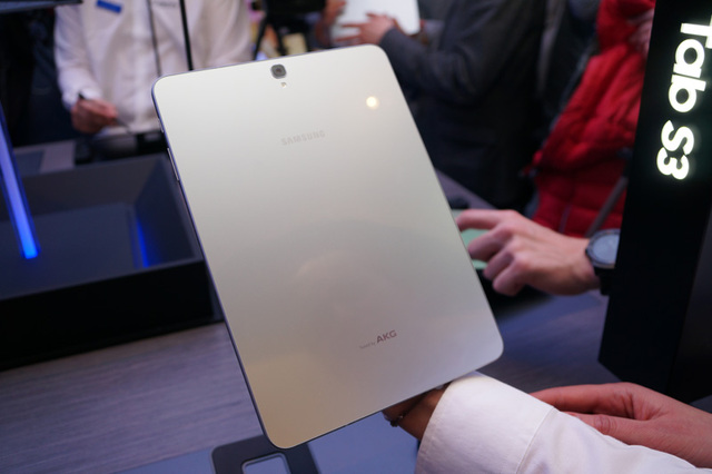その代わりというわけではないが、今年のMWC2017でハイライトされた製品は、約9.7インチのAndroidタブレット「Galaxy Tab S3」だ。本機の見どころをいくつか挙げるとすれば、まず2,048×1,536(QXGA)画素のHDR対応有機ELディスプレイを搭載している。プラットフォームはAndroid 7.0で、CPUにはクアルコムのクアッドコアプロセッサー「Snapdragon 820」を搭載する。