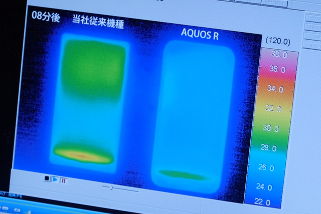 「Response」については、Snapdragon 835やUFS、64GB ROM、4GB RAMなどCPUやファイルシステムを刷新することで、倍速液晶を支えるハイパフォーマンスを実現。「パフォーマンスの持続と温度管理には密接な関係がある」とし、新開発のサーモマネージメントシステムにより、過去機種に対し約4度ほど発生する熱を低減させたという。
