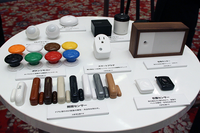 外出時に自宅の施錠状況を確認できる「鍵 開閉状況センサー」や、自宅内の様子を見たりテレビ電話のように会話ができる「ネットワークカメラ」など、様々なデバイスを用意。「auでんき」の電気使用料を家電ごとにチェックできる「スマートプラグ」や、「マルチセンサー」を使って自宅内の家電をスマホ上でコントロールすることなども可能になるという。
