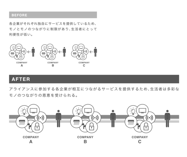 参画企業のひとつである東京急行電鉄は、プレスリリースの中で「IoTはあらゆるモノがつながることで、モノ単体での価値を超えた有機的なサービスを提供できるようになり、産業や人の暮らしのあり方を大きく変えていく可能性を秘めている。本アライアンスは、人々の暮らしに密着した多種多様な業界のリーディングカンパニーが集まることで、日本品質の革新的な『暮らしのIoT』を実現し、世界に誇る新たな社会インフラの創造を目指していく」と述べている。