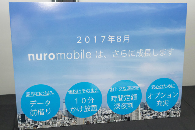 ソニーネットワークコミュニケーションズが運営するLTE通信サービス「nuroモバイル」は、翌月分のデータ通信容量を前借りできる「データ前借り」機能、深夜帯の5時間は通信料制限なしで高速通信を利用できる料金プラン「深夜割プラン」、国内通話の「10分かけ放題」という3サービスを8月1日より新たに開始する。
