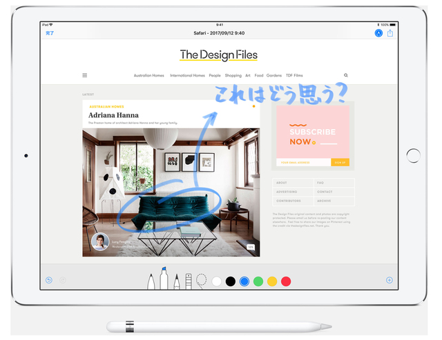 ほか、スプリットビューで表示させたアプリ間でのドラッグ&ドロップに対応、キーボードを切り替えせずフリックで記号や数字を入力できるように強化、汎用アプリでのApple Pencilを用いた書き込み対応など対応力を高めている。