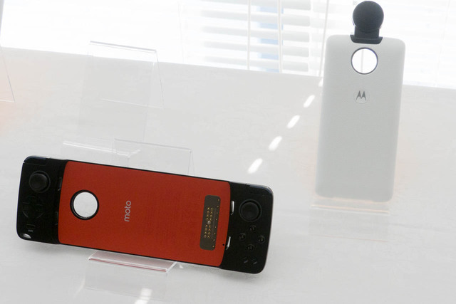 「Moto Mods」は、同社のフラグシップスマートフォン「Moto Z」シリーズ用の専用アクセサリー。Moto Zシリーズの背面に設けられた端子にマグネットで着脱できるよう設計されている。