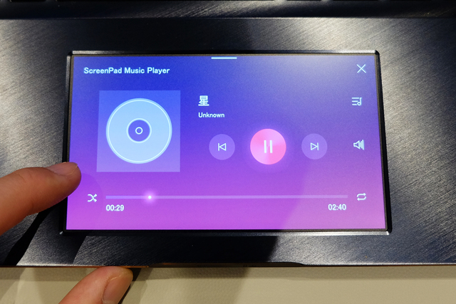 ZenBook Pro 15の最上位モデルとなる「ZenBook Pro 15 UX580」はタッチパッドとスクリーンを統合した「ScreenPad」を搭載したノートPC。メイン画面と合わせて2つのタスクを同時に行える。エンタテインメント向けのアプリも用意しており、音楽再生にも対応。SpotifyなどをScreenPad上で操作するといった使い方ができる。
