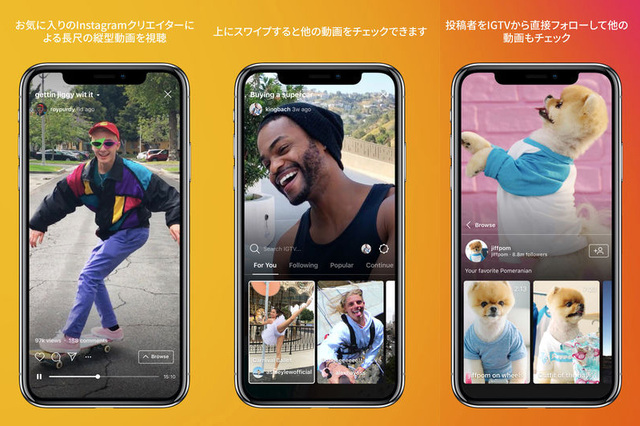 Instagramは、従来の1分間という時間制限を超えた長尺の縦長動画を視聴できるアプリ「IGTV」を発表。日本でも提供を開始している。