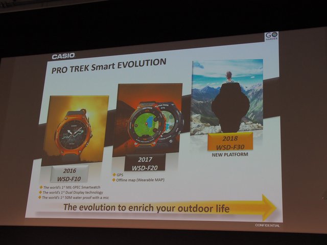 “PRO TREK Smart”は、同社のアウトドアウォッチブランド“PRO TREK”の流れを汲んだ、AndroidベースのOS「Wear OS by Google」を搭載したスマートウォッチ。2016年に第1弾となる「WSD-F10」、2017年に機能向上モデル「WSD-F20」を発売しており、WSD-F30は第3弾モデルとなる。