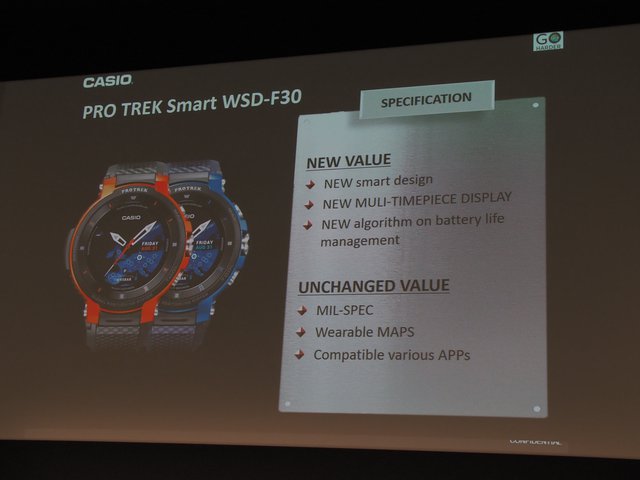 カシオは、ドイツ・ベルリンで開催される展示会「IFA2018」の開幕に先立ち、プレスカンファレンスを実施。スマートアウトドアウォッチ“PRO TREK Smart”「WSD-F30」を発表した。日本国内では2019年1月に発売され、価格は61,000円(税抜)。