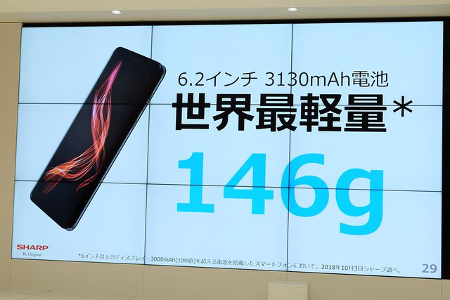 またAQUOS zeroの軽量設計についても言及。「映像ストリーミングやリアルなゲームが普及することで、大容量バッテリーや堅牢な構造設計が求められ、ハイエンド機種においては6インチのスマートフォンで200gなどになっている。つまり、スマートフォンを使い込むコアユーザーほど、重たいスマートフォンを使っている。これに対し、大画面・大電池と軽量化の両立を目指した。その結果として、今回146gという世界最軽量の質量を実現することができた」と “軽さ” のメリットを強くアピールした。