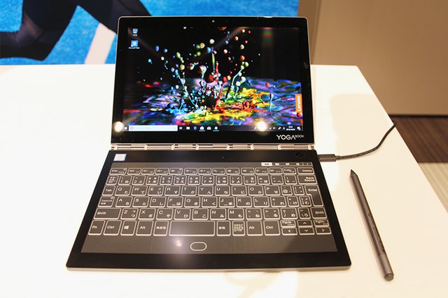製品発表ではIFA2018でも発表された4モデルを紹介。Yoga Bookの新モデル「Yoga Book C930」は、E-ink採用の電子ペーパーキーボードを搭載したデュアルディスプレイPCで、2年前に発売されたYoga Bookの後継機にあたる(関連ニュース)。