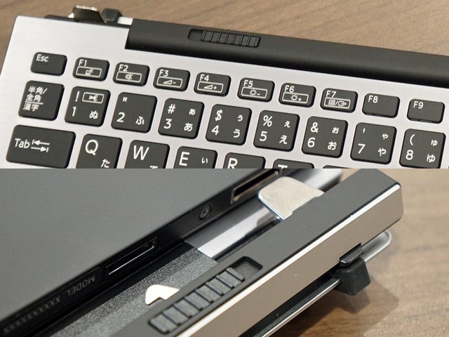 自動ロック機構の装備によって画面が外れないよう配慮。画面を外すためのスイッチを2ヶ所装備するディアルリリーススイッチにすることで、PCを閉じたままでも画面を取り外せるようにした。