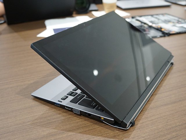 本機は、ノートPCとしてもタブレットとしても利用できる2in1 PC。ディスプレイ部を支えるスタンドがあるため膝上で使いにくかったり、ディスプレイをキーボード部に差し込む方式のため角度調整ができなかったり、それらの問題を克服するためにヒンジが巨大で重量も重くなったりといった、従来の2in1 PCが持つ課題を、独自技術によって解決したという。