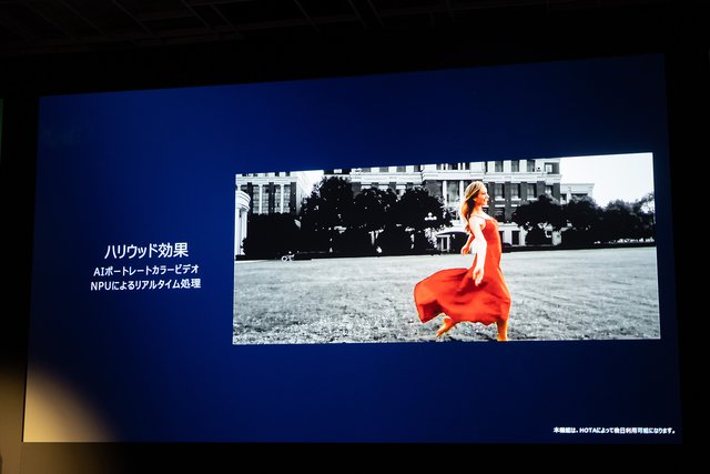 AIにより1,500以上の状況をリアルタイムで認識して適したモードに切り替える機能や、最大10枚の画像を合成してダイナミックレンジを拡大する「スーパーHDR」技術も搭載する。ポートレートモードにはハート、渦効果といったボケ効果を選べるモードも搭載された。さらに後述するNPU×2の搭載により、リアルタイムで被写体のみカラーの動画を撮影できる「AIポートレートカラービデオ」にも対応した。