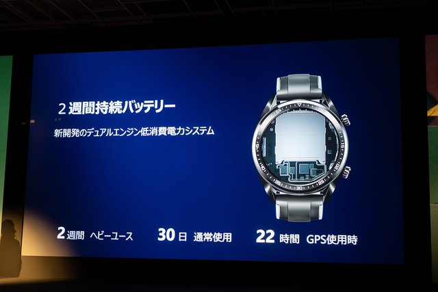また、GPSと心拍センサーを使用した状態でも2週間持続するバッテリーを搭載したスマートウォッチ「HUAWEI WATCH GT」も発表。スポーツモデル(ブラック)が24,880円(税抜)で12月7日発売、クラシックモデル(シルバー)は25,880円(税抜)で12月19日発売となる。