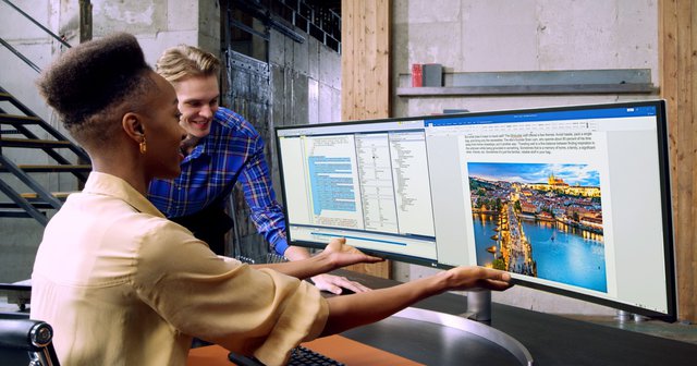 輝度は350nits。10W×2のステレオスピーカーを搭載する。入出力端子はUSB-C×1、HDMI×2、DP×1、USB 3.0 (4 down)を備える。