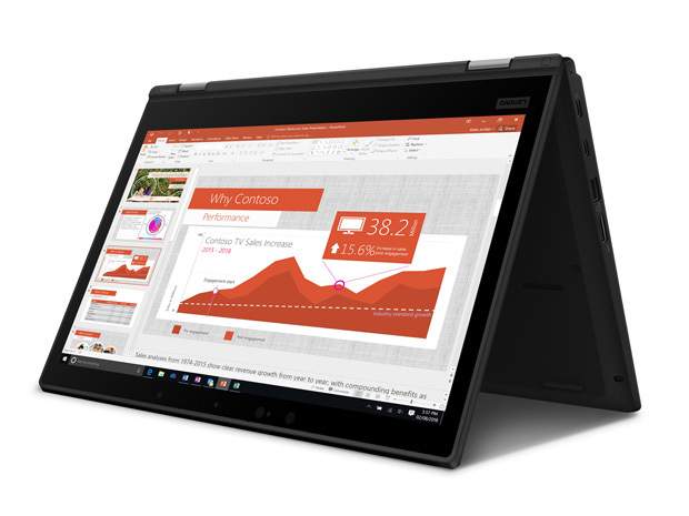 レノボ、ペン入力に対応した13.3型の2in1ノートPC「ThinkPad L390 Yoga」。クラムシェルモデルも