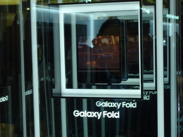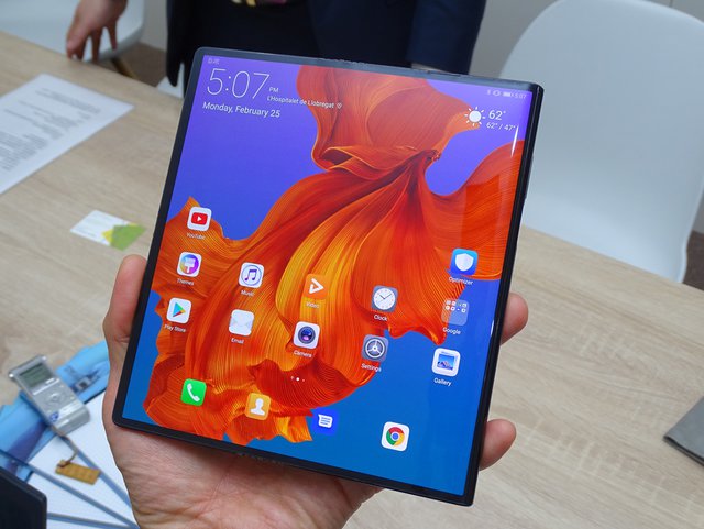 “折りまげ” スマホは先にお伝えしたファーウェイの「Mate X」(関連記事)のほか、サムスンが「Galaxy Fold」を発表しているが、こちらは残念ながらガラスケースの中に置かれているだけで触れなかった。