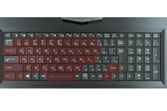 ディスプレイのサイズは17.3型で、フルHD(1,920×1,080)のノングレア。リフレッシュレートは120Hzで、水平・垂直ともに85度の視野角に対応する。キーボードはマルチロールオーバーに対応することで、複数キーの同時押しが可能。FPSで多様されるWASDのキーには縁取り処理が施された。