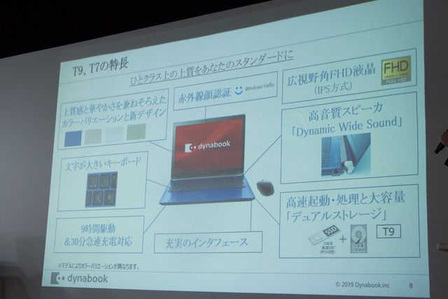CPUはT9/T7ともに第8世代 Core i7-8565Uを採用するが、T9のみ8GB×2のRAMに加え、高速な128GB SSDと大容量 1TB HDDを組み合わせた「デュアルストレージ」構成を採用する。T7は4GB×2のRAM、1TB HDDを搭載する。