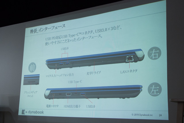 インターフェースもUSB PD対応Type-Cコネクタを始め、USB3.0×2、ブルーレイドライブなど他種類を搭載する。