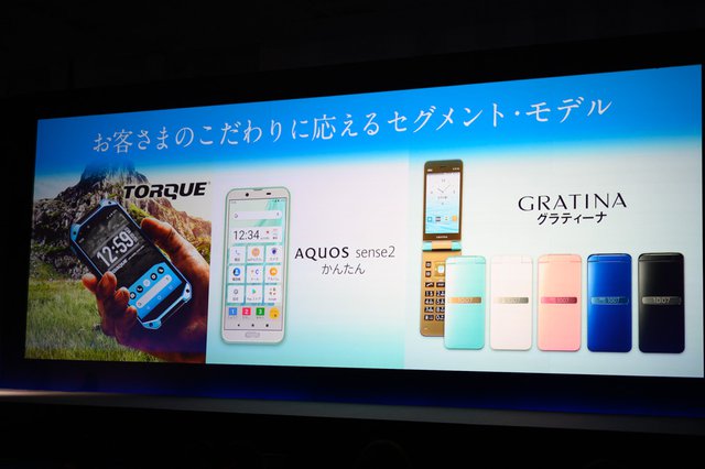 そのほか「スマホ初心者でも分かりやすい」とする簡単なホーム画面と学習アプリを搭載するシャープ「AQUOS sense2 かんたん」、折りたたみにこだわる方に向けたモデルとして、シンプルなデザインで5色のカラーがラインナップするフィーチャーフォン、京セラ「GRATINA」がラインナップされる。