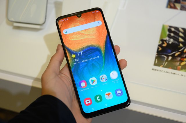Galaxy A30は、約6.4インチの有機ELディスプレイを搭載し、3,900mAhの大容量バッテリーを搭載するスタンダードモデル。機能が充実しているだけなく、半日以上動画を視聴できるバッテリーを備えているという。また日本では防水性能が求められるとのことで、防水仕様となっている。